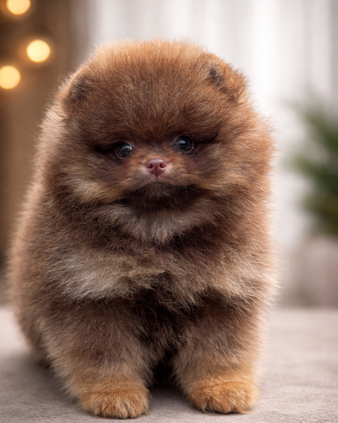 El Pomerania Cara de Oso es una de las variedades más exclusivas y adorables de la raza, reconocido por su rostro redondeado tipo peluche, hocico corto, ojos grandes y pelaje abundante y esponjoso. Su tamaño mini y estructura compacta lo convierten en el compañero ideal para hogares y apartamentos, sin perder elegancia ni presencia. Destaca por su inteligencia, carácter cariñoso y temperamento equilibrado, creando un vínculo cercano y leal con su familia. Criado bajo altos estándares de bienestar y genética, este Pomerania no solo enamora por su apariencia, sino por su personalidad dulce y vivaz. Una mascota premium para quienes buscan ternura, calidad y exclusividad.